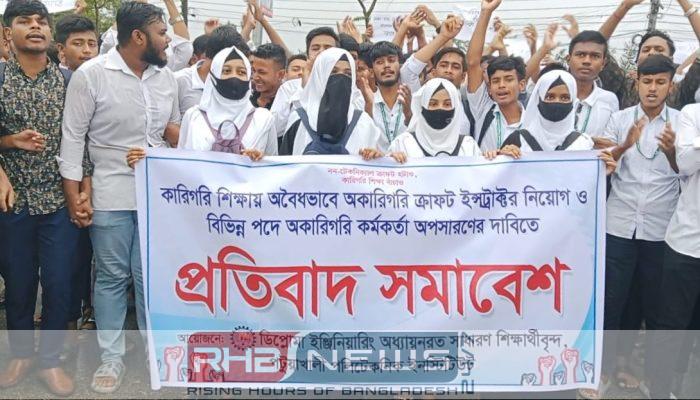 কারিগরি ও মাদ্রাসা বিভাগের সচিব এবং কারিগরি শিক্ষা বোর্ডের চেয়ারম্যানের অপসারন, কারিগরি পদে নন কারিগরি জনবল নিয়োগ বন্ধ, ২০২১ সালে নিয়োগকৃত ২১৮১ জন ক্রাফট ইন্সট্রাক্টরকে আগামী ২৫ আগষ্টের মধ্যে কর্মস্থল থেকে প্রত্যাহার, নিয়োগবিধি সংশোধন সহ ১৬ দফা দাবি আদায়ে পটুয়াখালীতে বিক্ষোভ মিছিল ও প্রতিবাদ সমাবেশ করেছে বিভিন্ন কারিগরি বিভাগের শিক্ষার্থীরা।