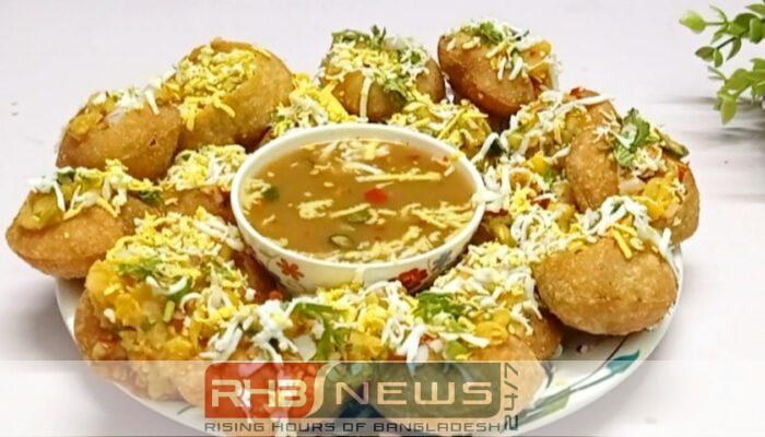 • সব ভাজা হয়ে গেলে ফুসকা নিয়ে মাঝখানে ছিদ্র করুন। তাতে আলুর মেখে রাখা পুর দিয়ে তেঁতুলের সস দিয়ে পরিবেশন করুন।