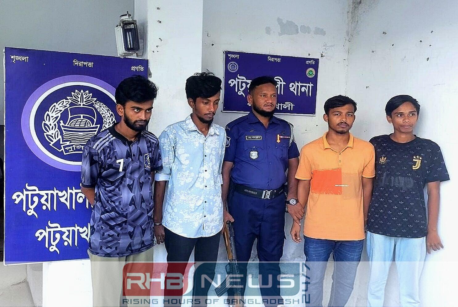 পটুয়াখালী সদর থানা পুলিশ ৪ অক্টোবর শনিবার অভিযান চালিয়ে কিশোর গ্যাং চক্রের চার সদস্যকে গ্রেফতার করেছে।গ্রেফতারকৃতরা হলেন তালহা মৃধা (২০), পিতা মোঃ মুরাদ মৃধা, সাং- সবুজবাগ মোড় (মৃধা বাড়ী), ওয়ার্ড নং-০৪, পটুয়াখালী সদর। মোঃ আল কাইয়ুম রিফাত (২১), পিতা মোঃ রিপন হাওলাদার, সাং- আলীপুর, মহিপুর; বর্তমানে পিটিআই স্কুলের পিছনে, মজিবর প্যাদার বাড়িতে ভাড়াটিয়া হিসেবে বসবাস করেন। মোঃ নাজমুল হাসান (১৯), পিতা মোঃ জসিম খান, সাং- কয়ার চর, নলছিটি, ঝালকাঠি; বর্তমানে থানাপাড়া এলাকায় মন্টু চৌকিদারের বাসায় ভাড়াটিয়া।মোঃ সিয়াম সিকদার ওরফে আকাশ (১৯), পিতা মোঃ রিপন সিকদার, সাং- কাঠলতলী, মির্জাগঞ্জ; বর্তমানে শের-ই-বাংলা সড়কে সীমা চৌধুরীর বাসায় ভাড়াটিয়া হিসেবে বসবাস করেন।