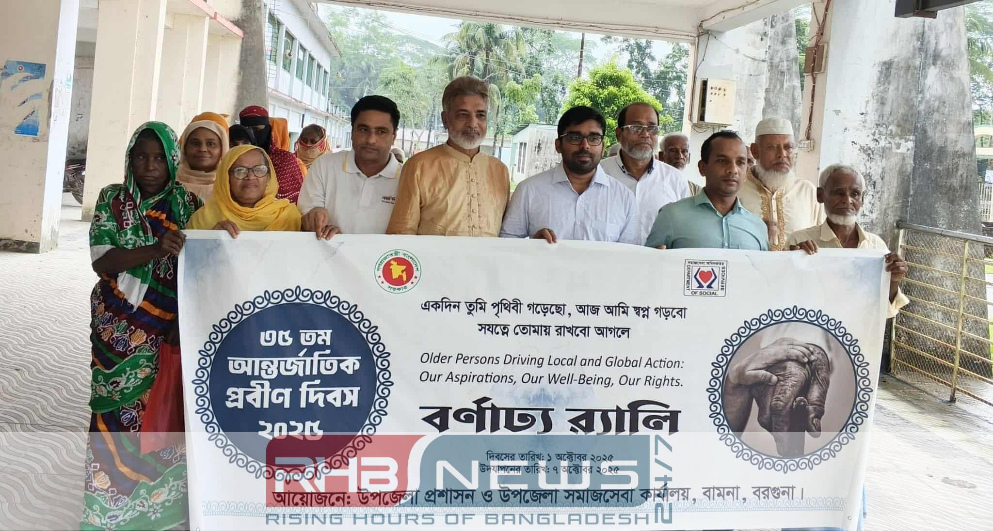 আন্তর্জাতিক প্রবিন দিবস ২০২৫ বরগুনার বামনায় পালিত হয়েছে। একদিন তুমি পৃথিবী গড়েছো, আজ আমি স্বপ্ন গড়বো, সযত্নে তোমায় রাখবো আগলে এই প্রতিপাদ্যকে শ্লোগানকে সামনে রেখে এ উপলক্ষে বরগুনার বামনায় এক বর্নাঢ্য রেলি অনুষ্ঠিত হয়।