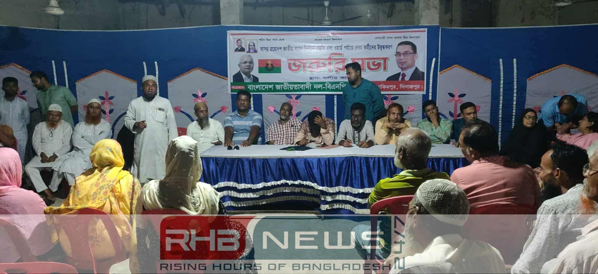 দিনাজপুরের হাকিমপুর (হিলি) পৌর বিএনপির উদ্যোগে আসন্ন ত্রয়োদশ জাতীয় সংসদ নির্বাচনকে সামনে রেখে দলীয় প্রস্তুতি এবং ওয়ার্ড পর্যায়ের নেতাকর্মীদের সক্রিয় অংশগ্রহণ নিশ্চিত করতে এক আলোচনা সভা অনুষ্ঠিত হয়েছে।