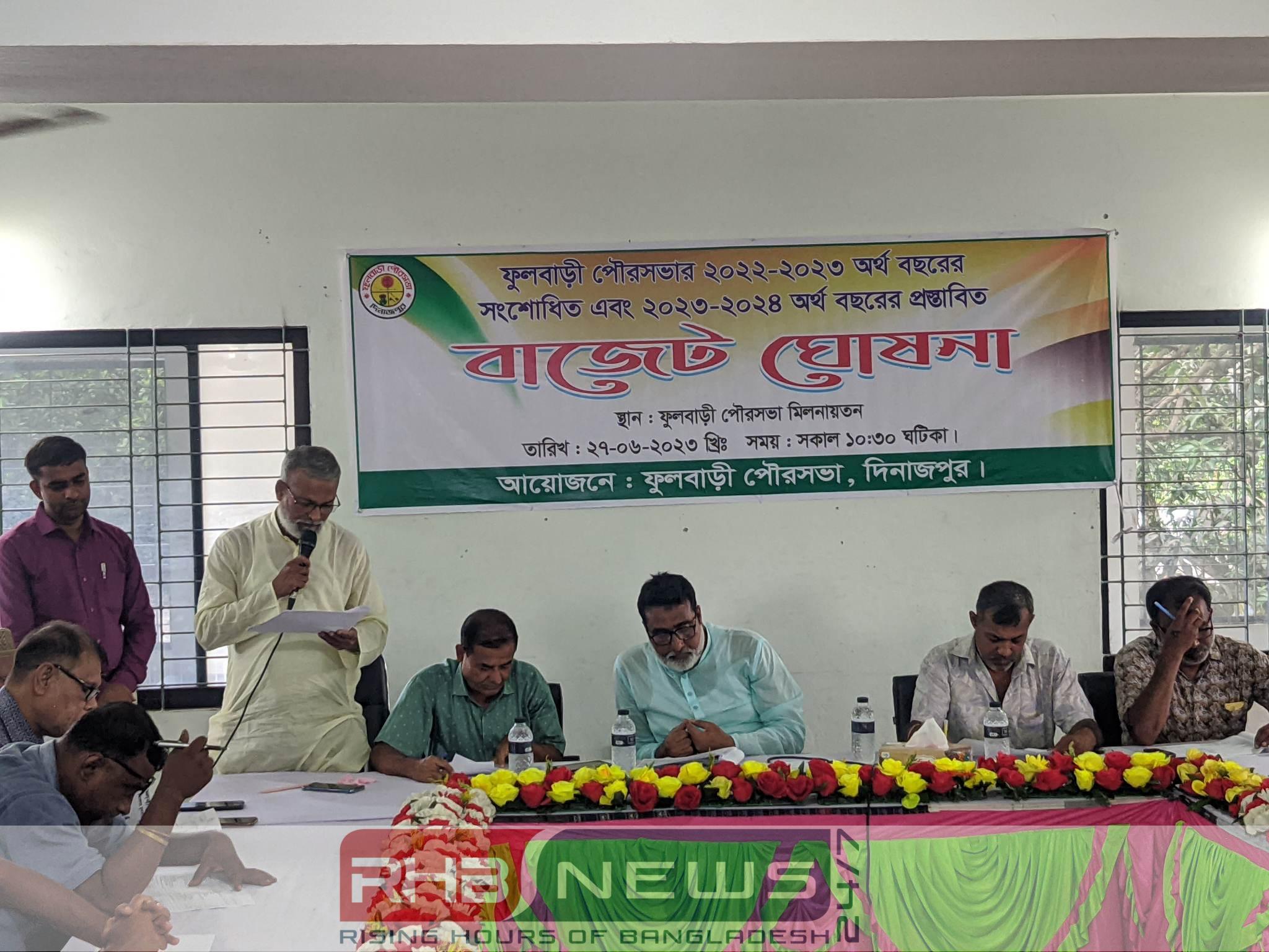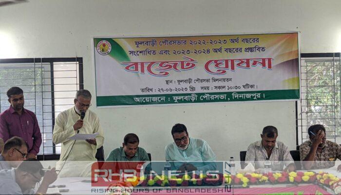 ২৭ জুন মঙ্গলবার সকাল সাড়ে ১০টায় ফুলবাড়ী পৌরসভার সভাকক্ষে আশরাফ পারভেজ এর সঞ্চালনায়, সভাপতিত্ব করেন এবং বাজেট ঘোষনা করেন ফুলবাড়ী পৌর মেয়র আলহাজ্ব মাহমুদ আলম লিটন। এর পর বাজেটের বিস্তারিত বর্ণনা দেন পৌরসভার কোষাধ্যক্ষ শেখ সাহার আলী। রাজস্ব খাতের আয় ও ব্যয় তুলে ধরেন ফুলবাড়ী পৌরসভার প্রধান প্রকৌশলী লুৎফুল হুদা চৌধুরী লিমন।