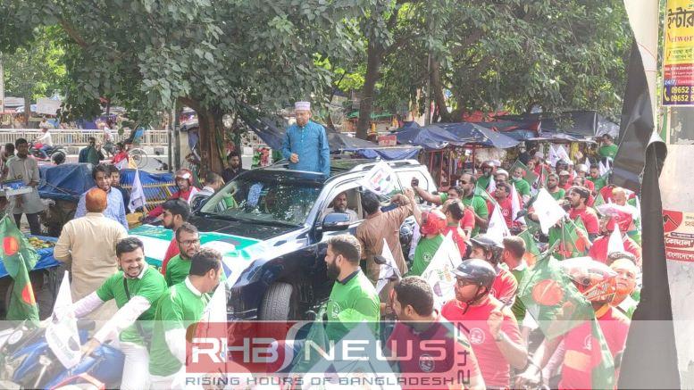 শোভাযাত্রায় দেখা গেছে, শুরুর দিকে শতাধিক মোটরসাইকেল শোভাযাত্রায় অংশগ্রহণ করেন। এরপর একটি ছাদ খোলা গাড়িতে অ্যাডভোকেট হেলাল উদ্দিন। তিনি গাড়িতে দাঁড়িয়ে হাত নেড়ে সবাইকে স্বাগত জানান। এরপরে ছিল আরও কয়েকশো মোটরসাইকেল। প্রতিটি মোটরসাইকেলে ২ জন করে জামায়াত কর্মীরা অংশগ্রহণ করেন। তাদের অনেকের মাথায় হেলমেট দেখা যায়নি।