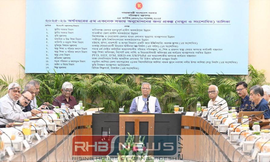 সোমবার (১০ নভেম্বর) পরিকল্পনা কমিশন চত্বরে এনইসি সম্মেলন কক্ষে প্রধান উপদেষ্টা ও একনেকের চেয়ারপারসন ড. মুহাম্মদ ইউনূসের সভাপতিত্বে অনুষ্ঠিত সভায় এই অনুমোদন দেওয়া হয়। সভায় নতুন ৯টি, সংশোধিত ২টি এবং ব্যয় না বাড়িয়ে মেয়াদ বাড়ানোর একটি প্রকল্প অনুমোদন দেওয়া হয়।