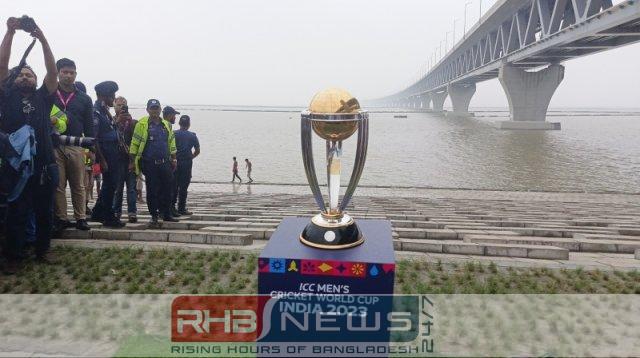 বিশ্ব ভ্রমণের অংশ হিসেবে আসন্ন ওয়ানডে বিশ্বকাপ ট্রফি এখন বাংলাদেশে। তিন দিনের বাংলাদেশ ট্যুরের প্রথম দিনে আজ (সোমবার) স্বপ্নের পদ্মা সেতুতে ফটোসেশনের জন্য নেওয়া হয়েছে ট্রফিটি।