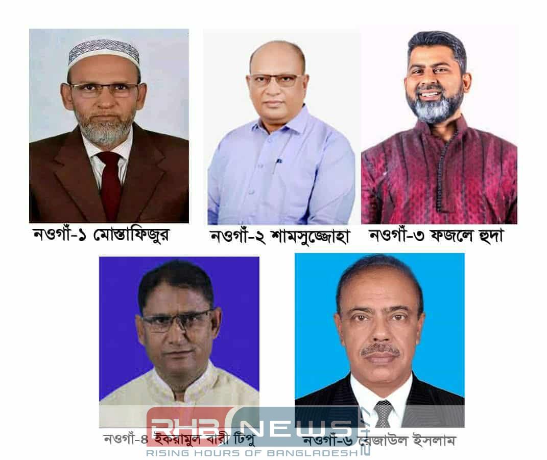 ঘোষিত প্রার্থীরা হলেন—নওগাঁ-১: মোস্তাফিজুর রহমান, নওগাঁ-২: শামসুজ্জোহা খান জোহা, নওগাঁ-৩: ফজলে হুদা বাবুল, নওগাঁ-৪: ডা. ইকরামুল বারী টিপু, নওগাঁ-৬: শেখ মোঃ রেজাউল ইসলাম রেজু, নওগাঁ-৫ আসনের প্রার্থী পরে ঘোষণা হবে।